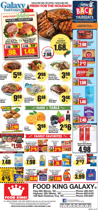 The Food King weekly ad 3-9dec, 2025 brings you the latest discounts on groceries, fresh produce, and household items. Each flyer is made to help families save more on everyday needs. Shoppers can check the ad online or in-store to see the best deals for this week.