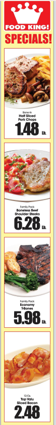 The Food King flyer has discounts on fresh produce, meat, snacks, dairy, pantry items, and household goods. Specials change every week.